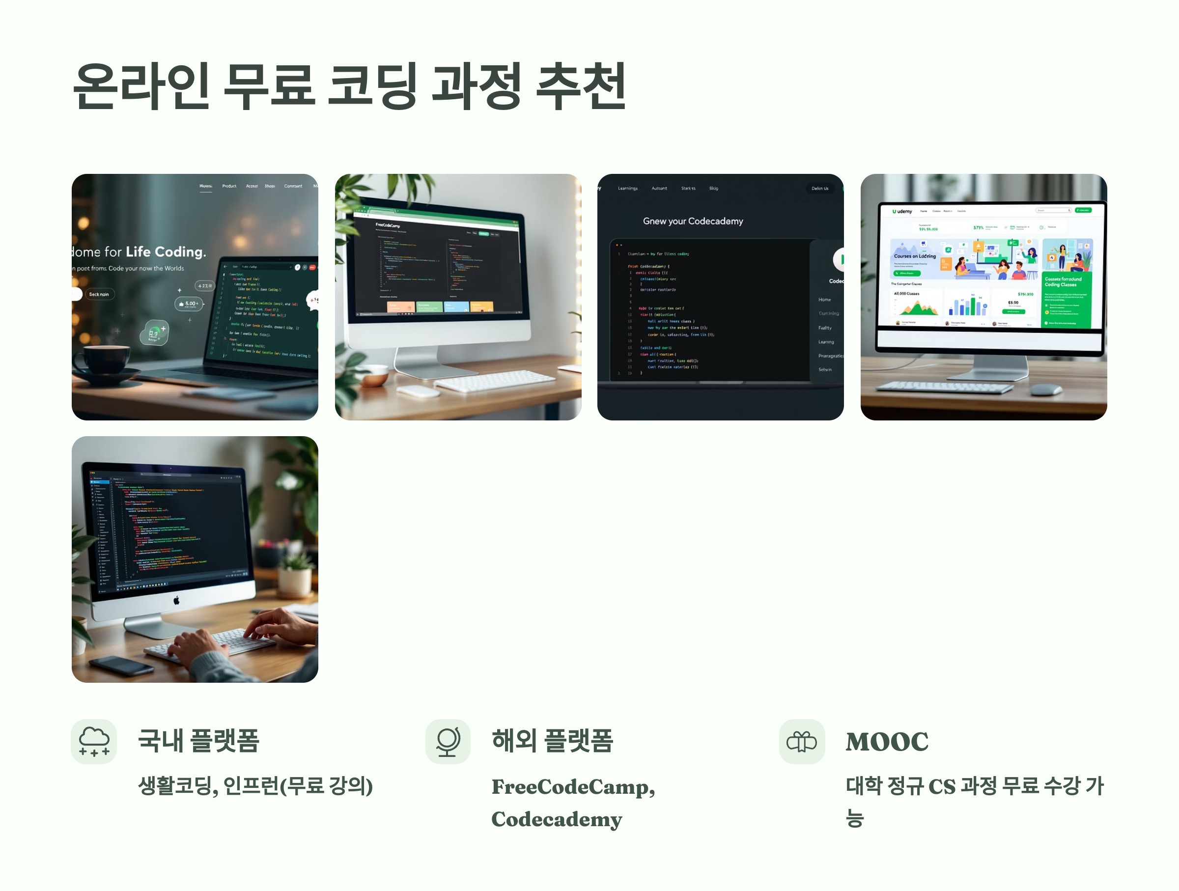 코딩 배워보고 싶지만 돈이 부담돼서 망설였다면? 괜찮아요! 지금은 무료로도 고퀄리티 강의를 들을 수 있는 시대예요. 아래에 소개하는 과정들은 비전공자도 무리 없이 시작 가능한 강의들로만 모았답니다. 💸💻